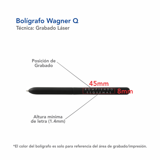 Bolígrafo marca Wagner con repuesto tipo Parker Japonés. Tinta Negra base aceite. Acabado negro satinado con clip cromado
