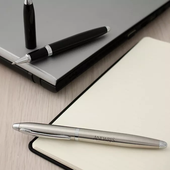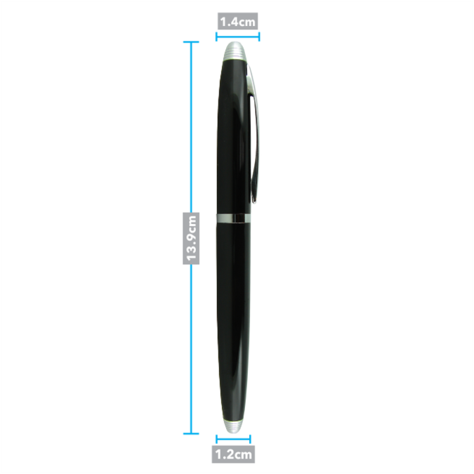 Cuerpo metálico con tapón que cierra a presión. Acabados brillantes. Detalles color cromo