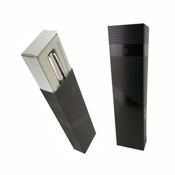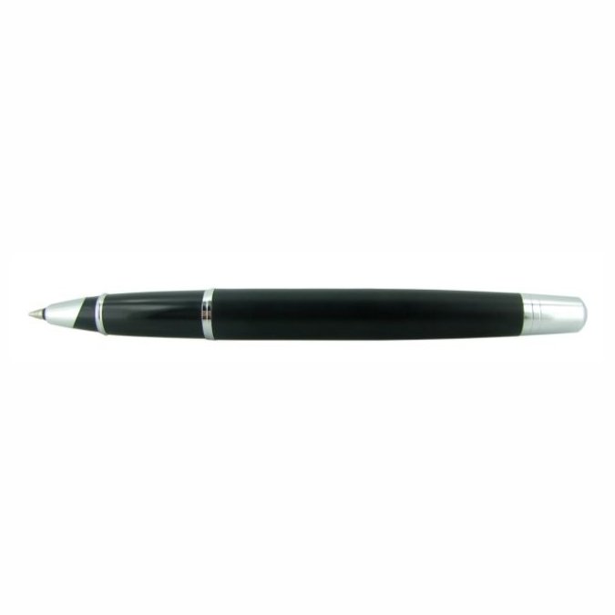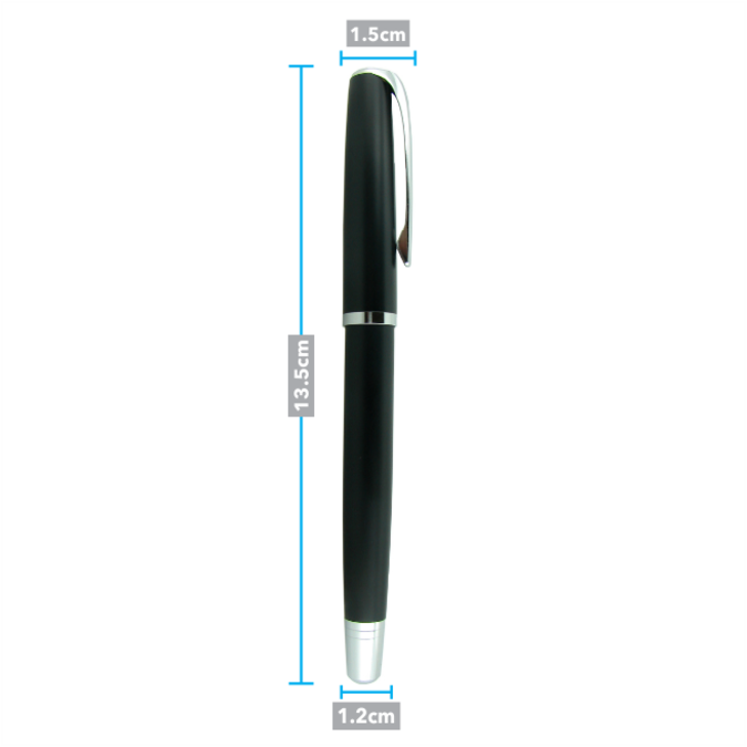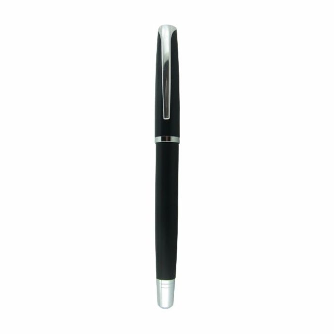 Bolígrafo metálico con tapón que cierra a presión. Acabado mate y detalles cromados. Escritura de alto desempeño