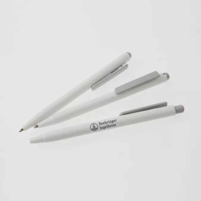 Bolígrafo retráctil fabricado con plástico antibacterial. Por ser inorgánico, su efecto se mantiene activo de manera permanente.
