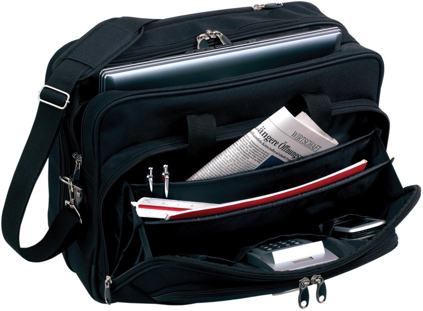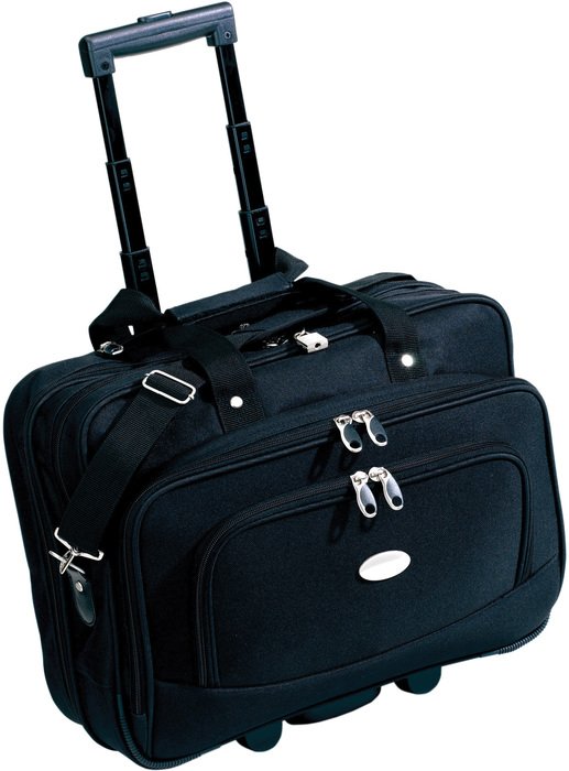 44 x 47 x 22 cm. Capacidad 36 litros aprox. Bolso / valija con manija extensible en tres tiempos. Sistema trolley, con ruedas. Compartimento acojinado porta notebook.