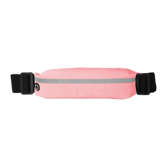 23 cm. x 5 cm. Poliamida. Cangurera / riñonera deportiva. Unico compartimento con cierre metálico, salida para auriculares, faja reflectante y correas elásticas con longitud aproximada de 88 cm. El material es impermeable.