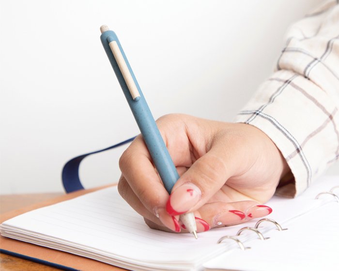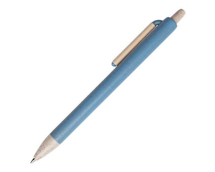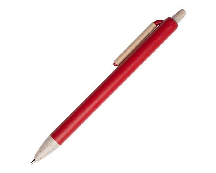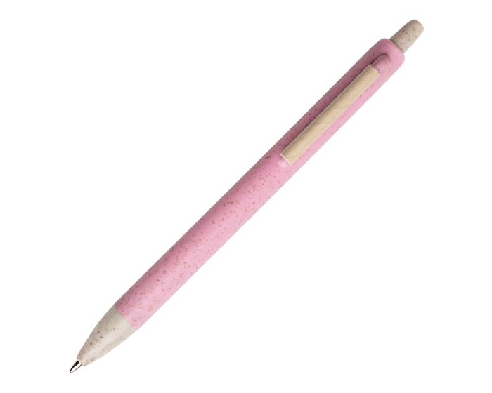 Bolígrafo ecológico de fibra de trigo con mecanismo de click; punta y botón en color natural y clip con cubierta de cartón.