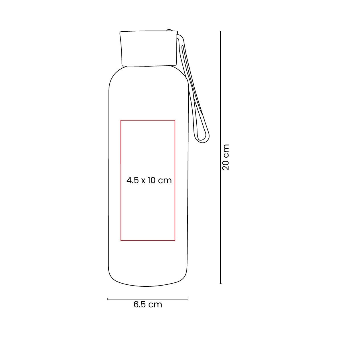 Cilindro fabricado en RPET, Tapa de plástico con sistema de rosca, incluye un asa de silicón para transportarla fácilmente.