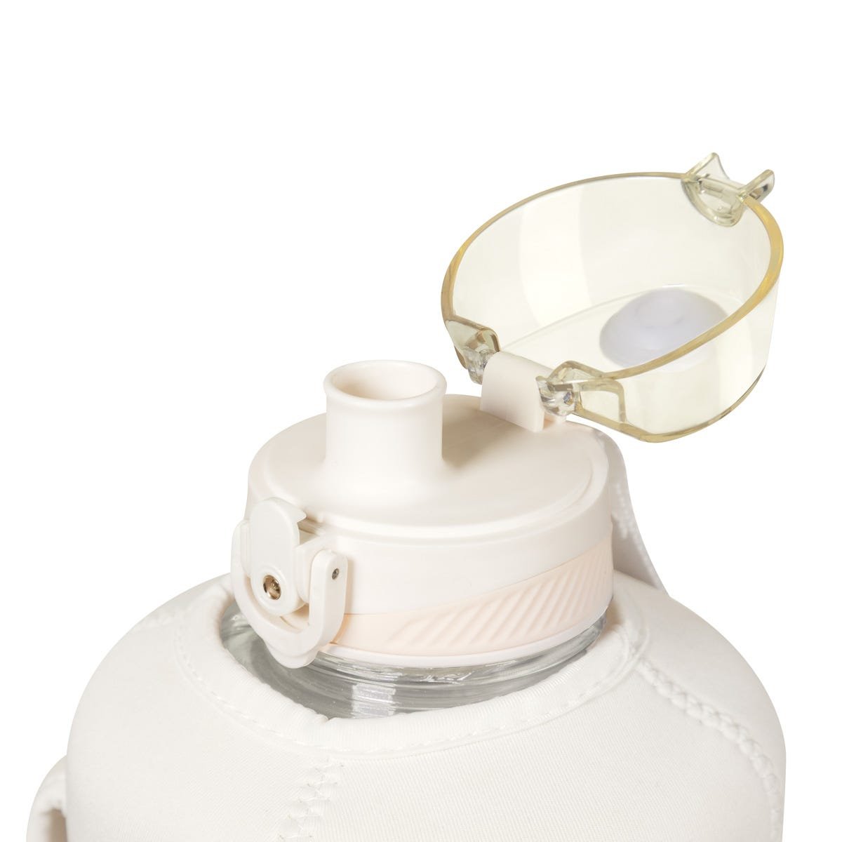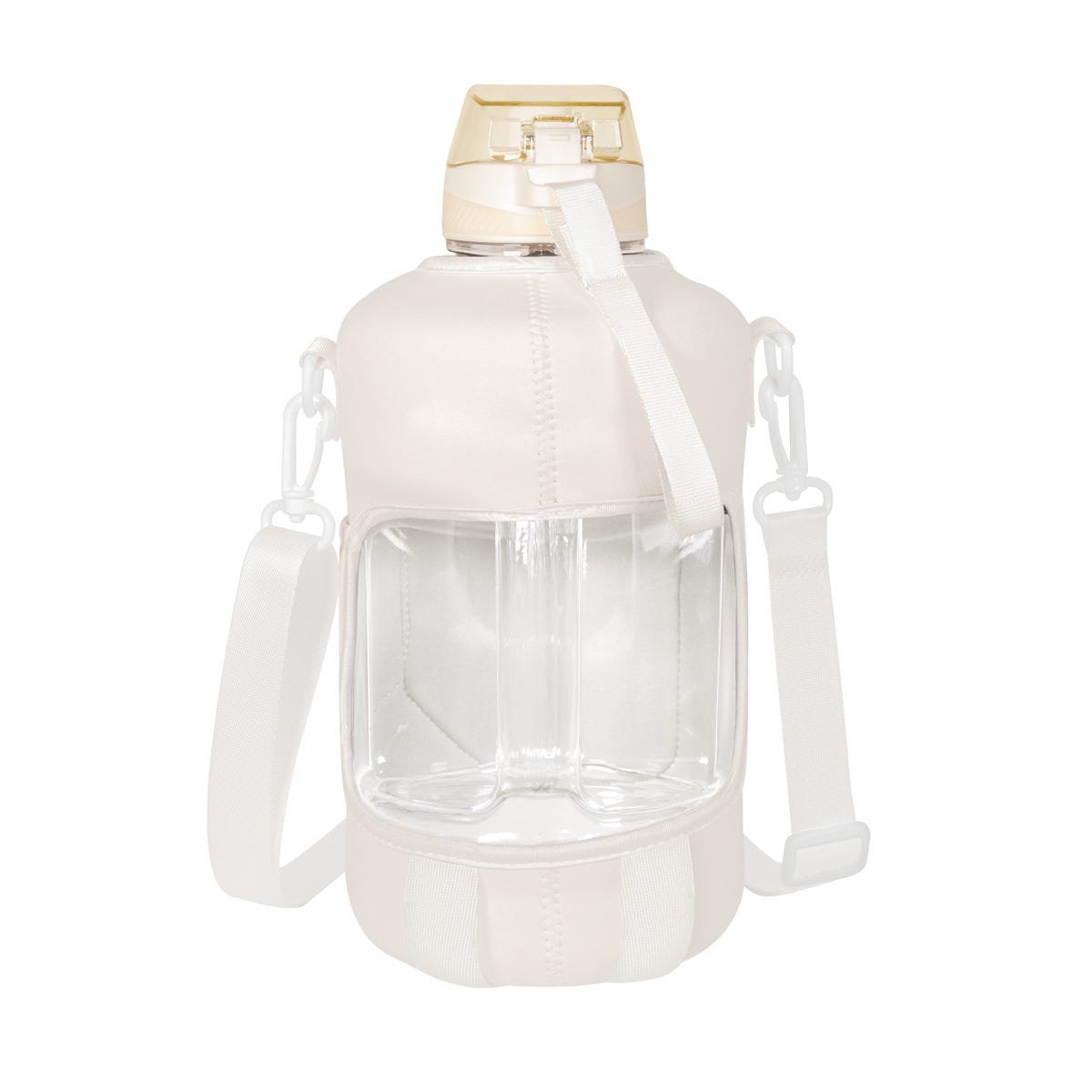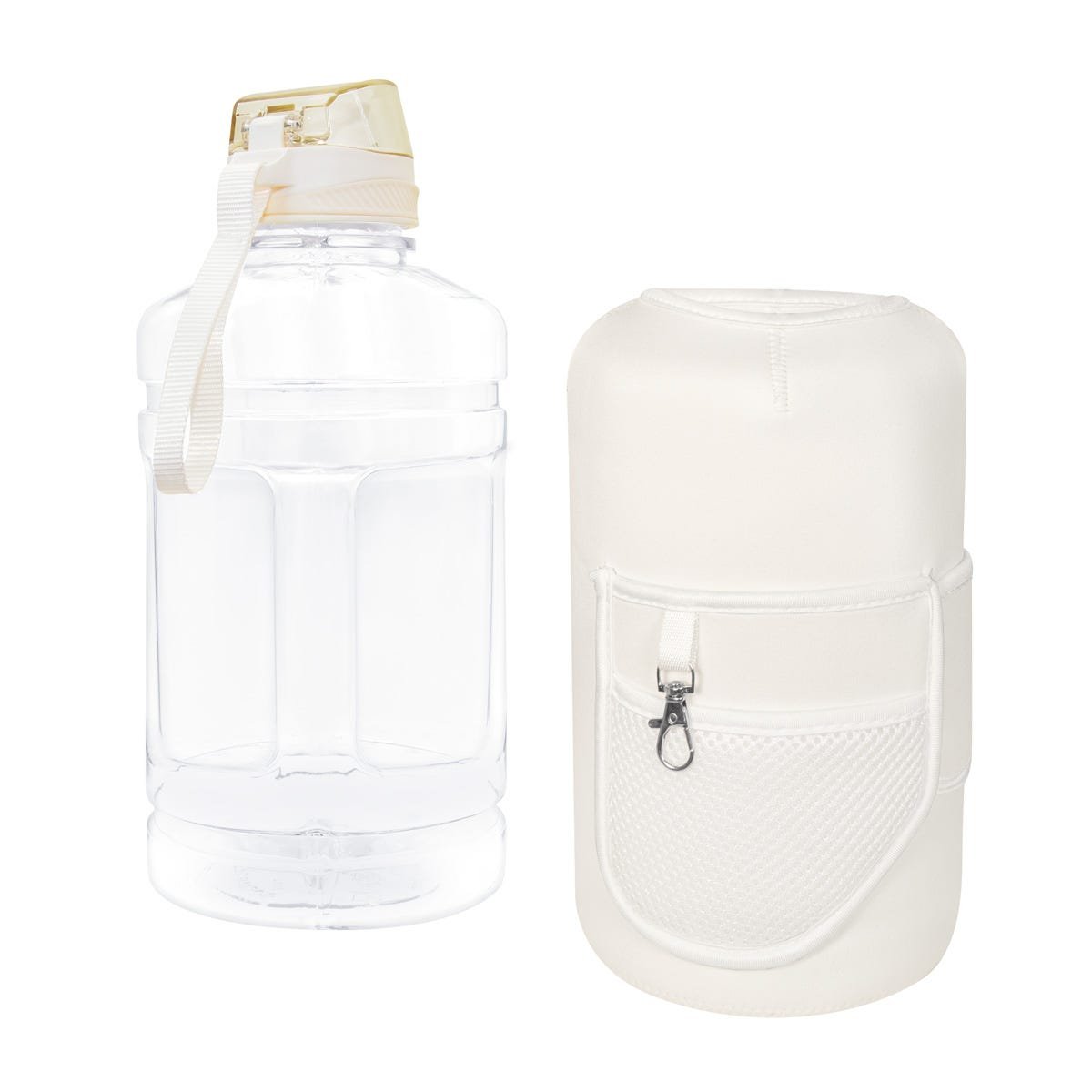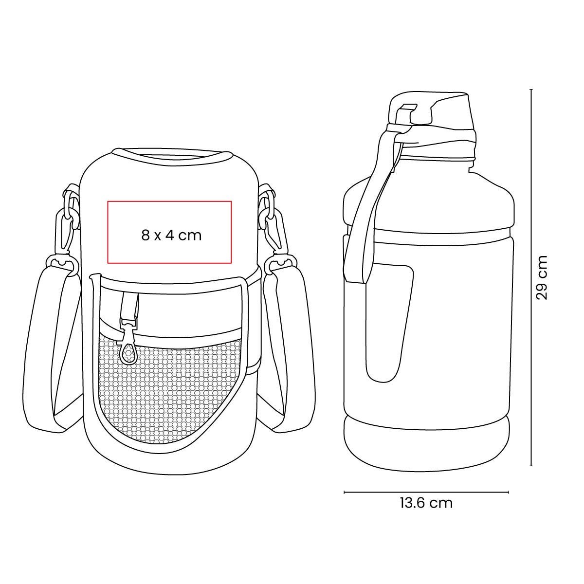 Cilindro con pared sencilla de plástico. Incluye funda removible de neopreno. Tapa de plástico con sistema de rosca y sobretapa que agrega un clip de seguridad para evitar derrames.