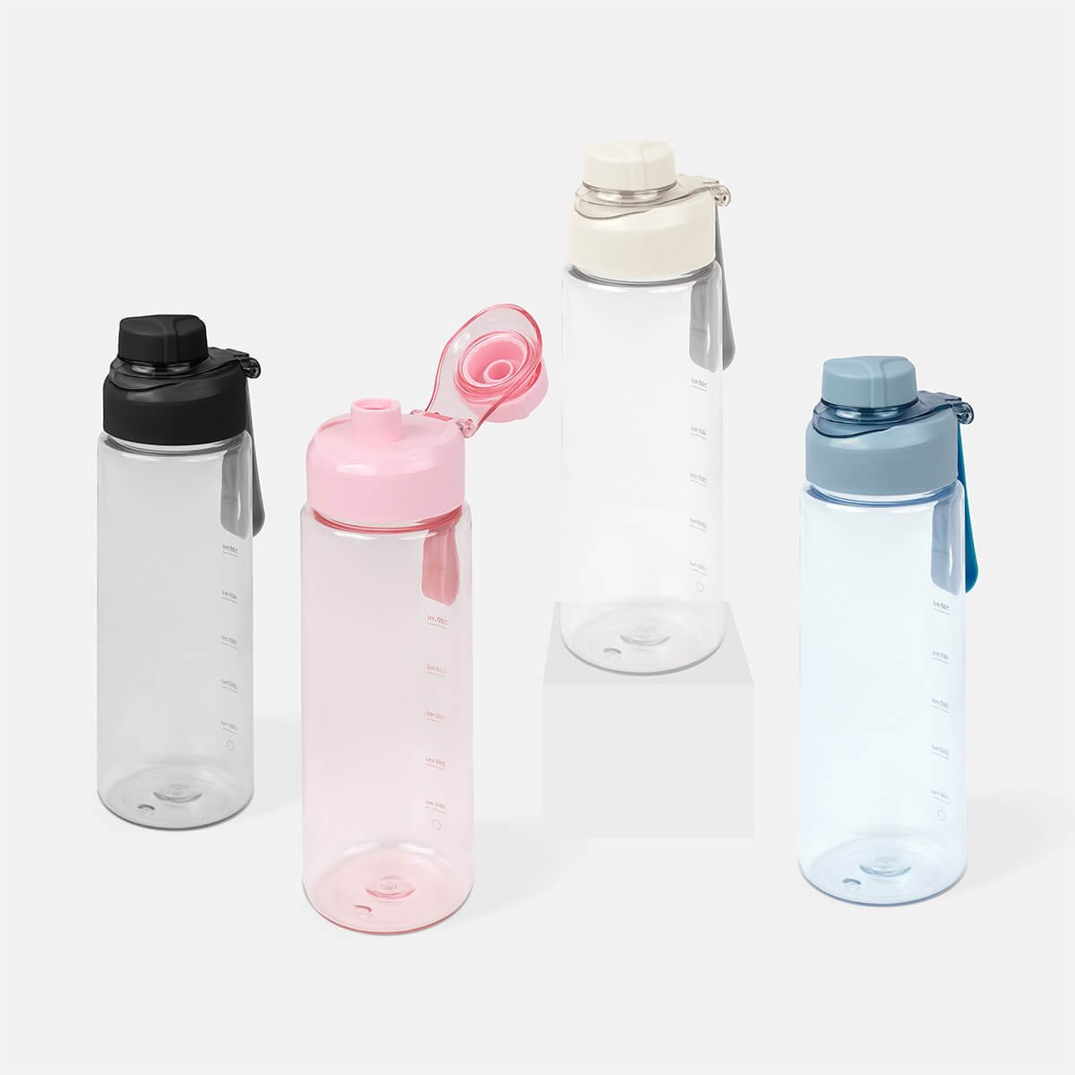 Cilindro de plástico de una pared. Tapa de plástico con sistema de rosca y sobretapa para la boquilla.