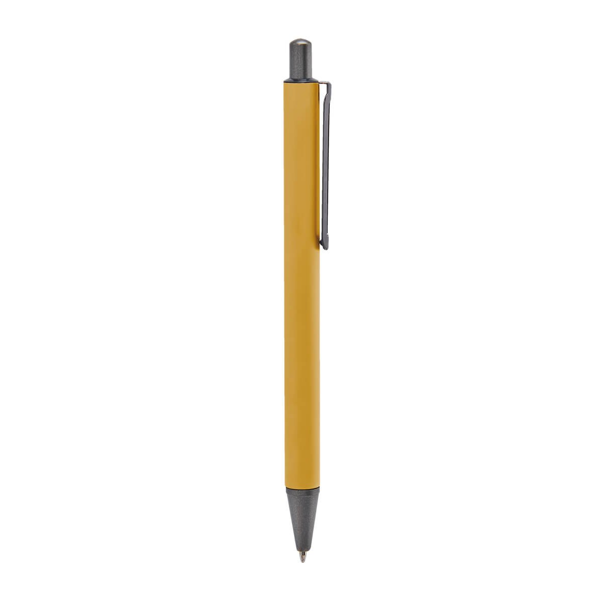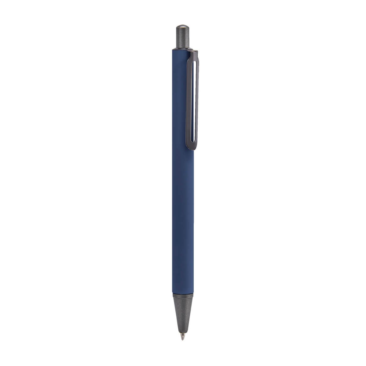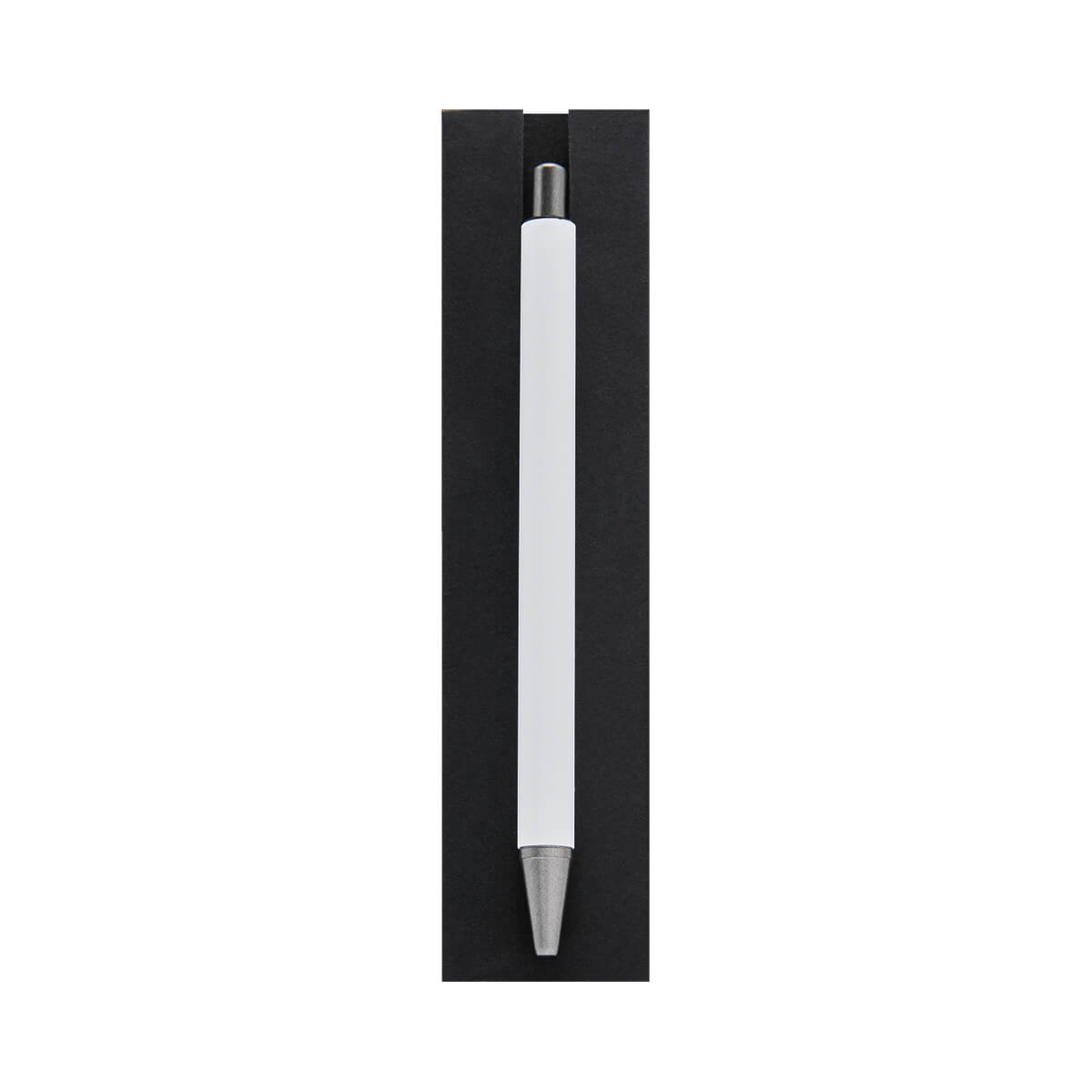 Bolígrafo metálico con terminado mate y clip suajado. Mecanismo pulsador. Incluye funda