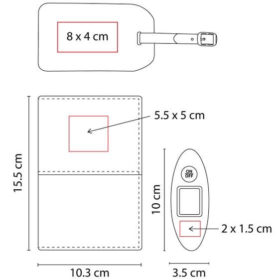 Incluye porta pasaporte, identificador de maleta con papel para datos y báscula con display digital con capacidad máxima de 40 Kg (unidades de peso: Kg y lb)