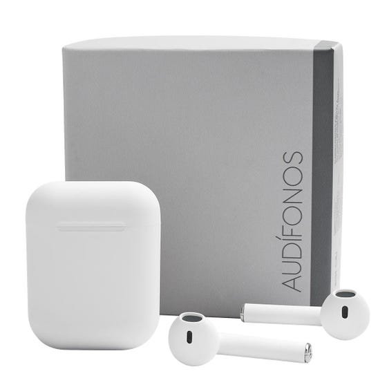 Audífonos bluetooth con terminado rubber y estuche recargable. Control touch para reproducción de música y función de llamada