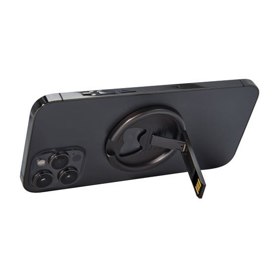 USB con destapador y soporte para smartphone con tecnología magnet. (Funciona solo con dispositivos iOS de reciente modelo).