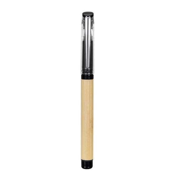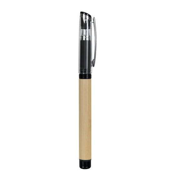 Bolígrafo de bambú con tapón. Grip antiderrapante. Tinta ge