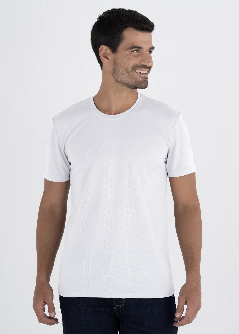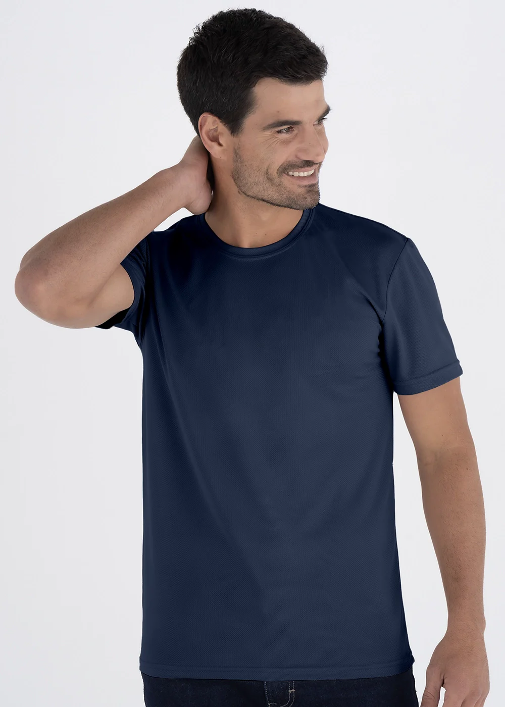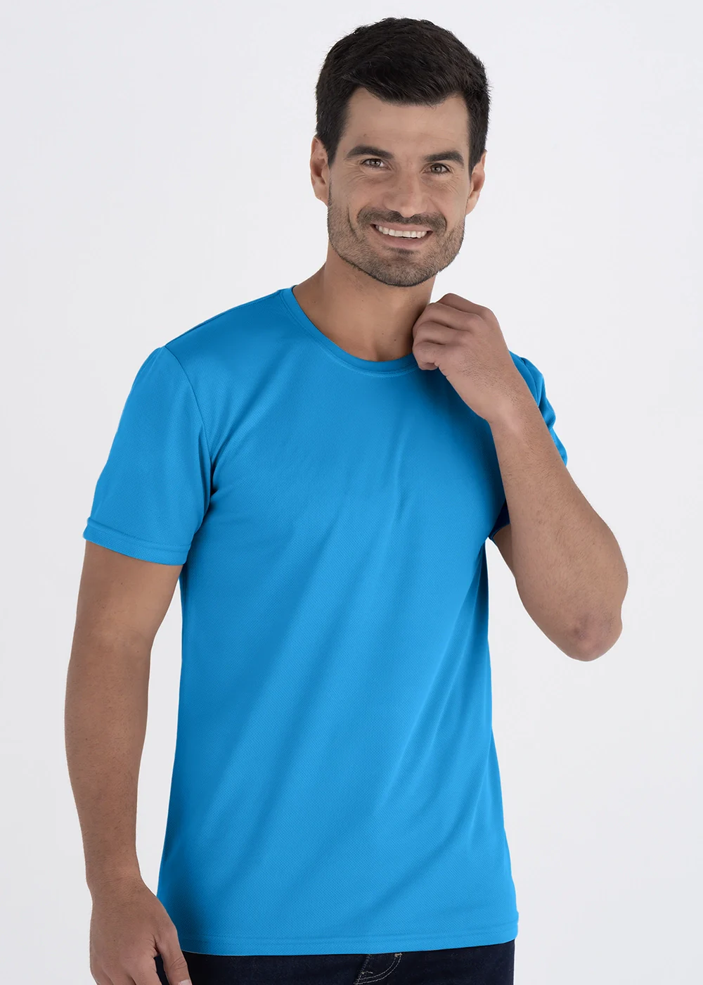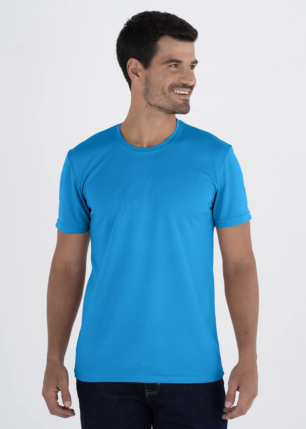 Playera cuello redondo manga corta, tela dry fi, 100% algodón, corte dama y caballero. Tallas XS a 3XL
